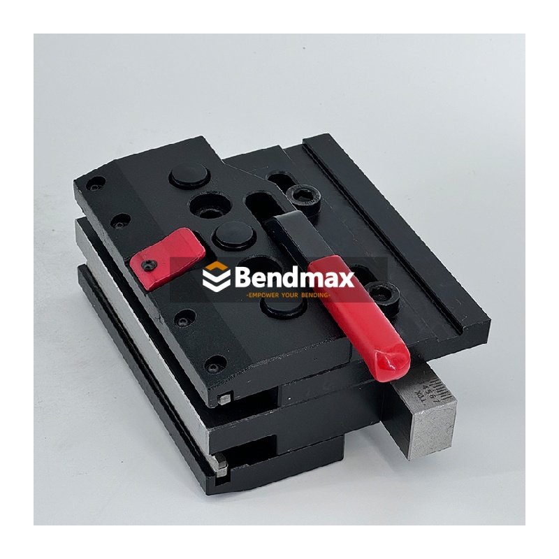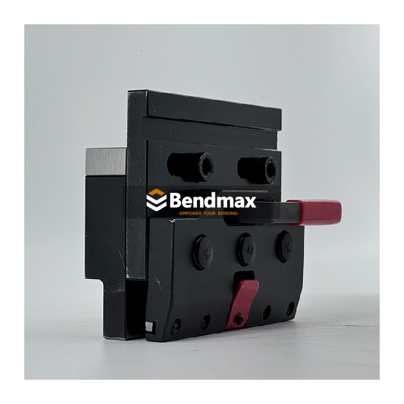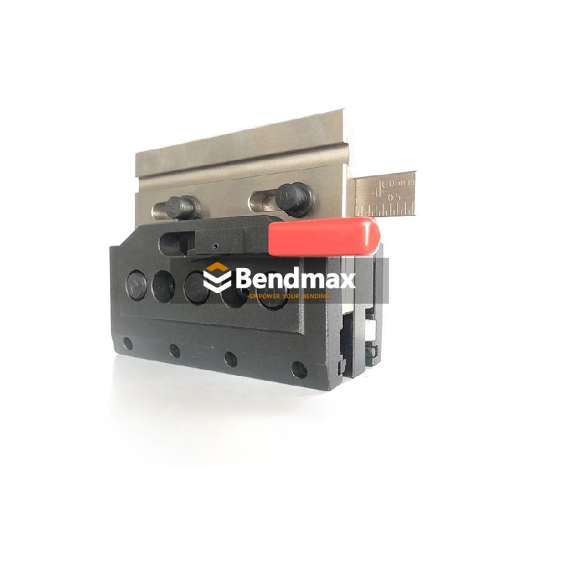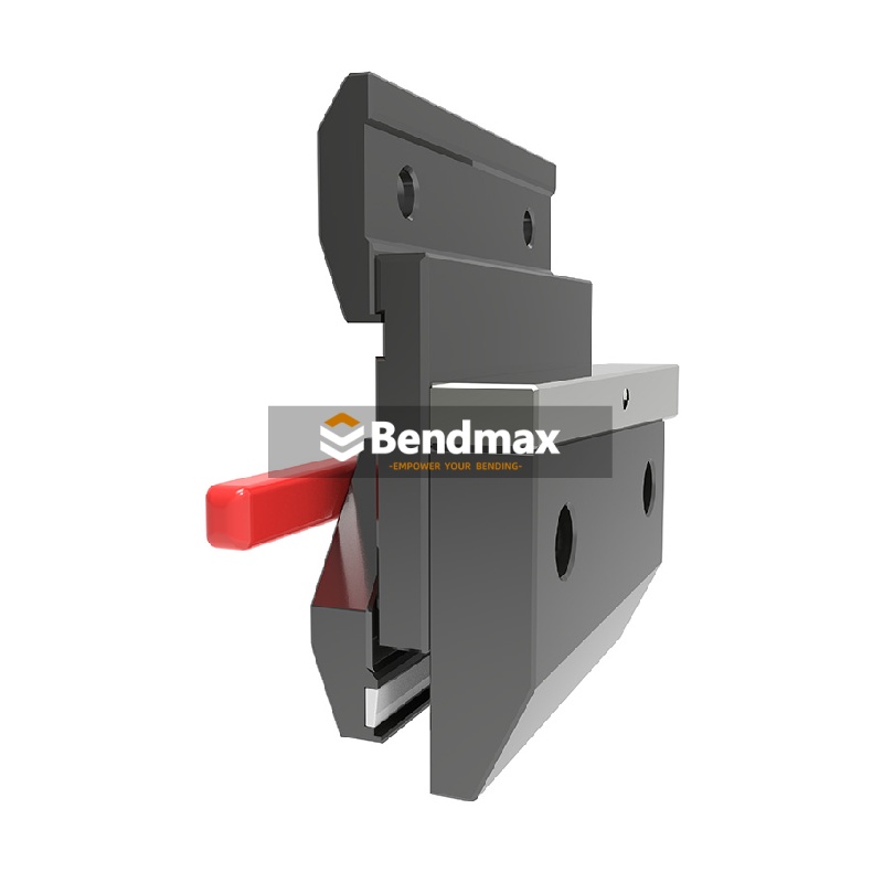 Der Express-Spannsystem Die Spannvorrichtung von Bendmax ermöglicht durch die einfache und schnelle manuelle Hebelbetätigung das schnelle Einspannen und Positionieren von Stempeln nach europäischem Standard. Mit einem Spannsystem für Ihre Abkantpresse hauchen Sie Ihrer Maschine neues Leben ein – Sie erhalten erweiterte Funktionen und eine optimierte Biegefläche. Spannvorrichtungen sind eine hervorragende Möglichkeit, Rüst- und Umrüstzeiten deutlich zu reduzieren.