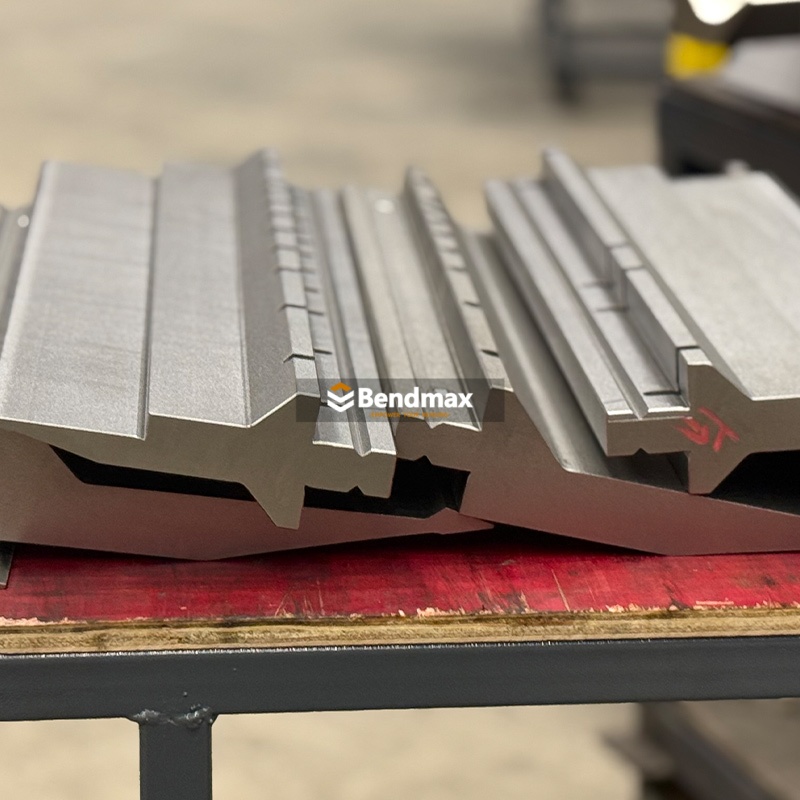 Amada-Doppel-V-Stanzblock, auch bekannt als Abkantpresse mit zwei V-förmigen WerkzeugenSie verfügen über zwei V-förmige Öffnungen, die eine schnelle Auswahl verschiedener Biegewinkel und Materialstärken ermöglichen. vielseitige Biegemaschinenwerkzeuge Die Flexibilität wird erhöht, die Rüstzeiten werden verkürzt und eine präzise und effiziente Blechumformung für verschiedene Produktionsanforderungen gewährleistet.