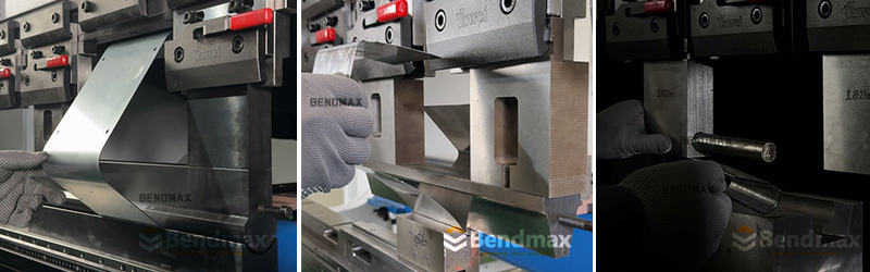 Als erste, schnelle Lösung schlug das Bendmax-Ingenieurteam vor, die linken und rechten Segmente des oberen Stempels zu vertauschen, wodurch ein Spalt in der Mitte entstand. So konnte das Werkstück beim Biegen durch den mittleren Raum hindurchgeführt werden, wodurch das Risiko einer Kollision zwischen Stempel und Werkstück verringert wurde.